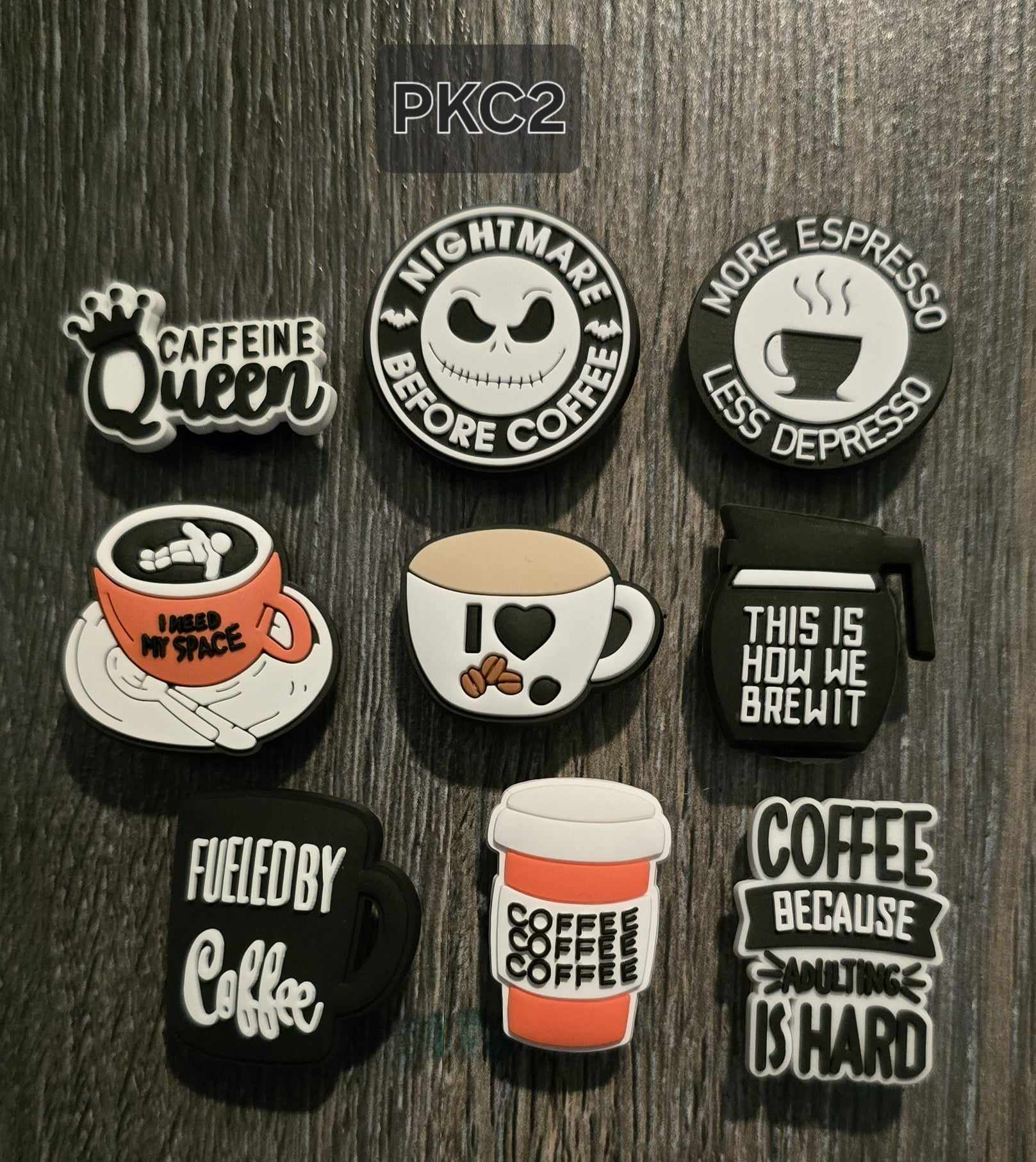 Add some extra decoration and personality to your Crocs with our Coffee Shoe Charms Pack.