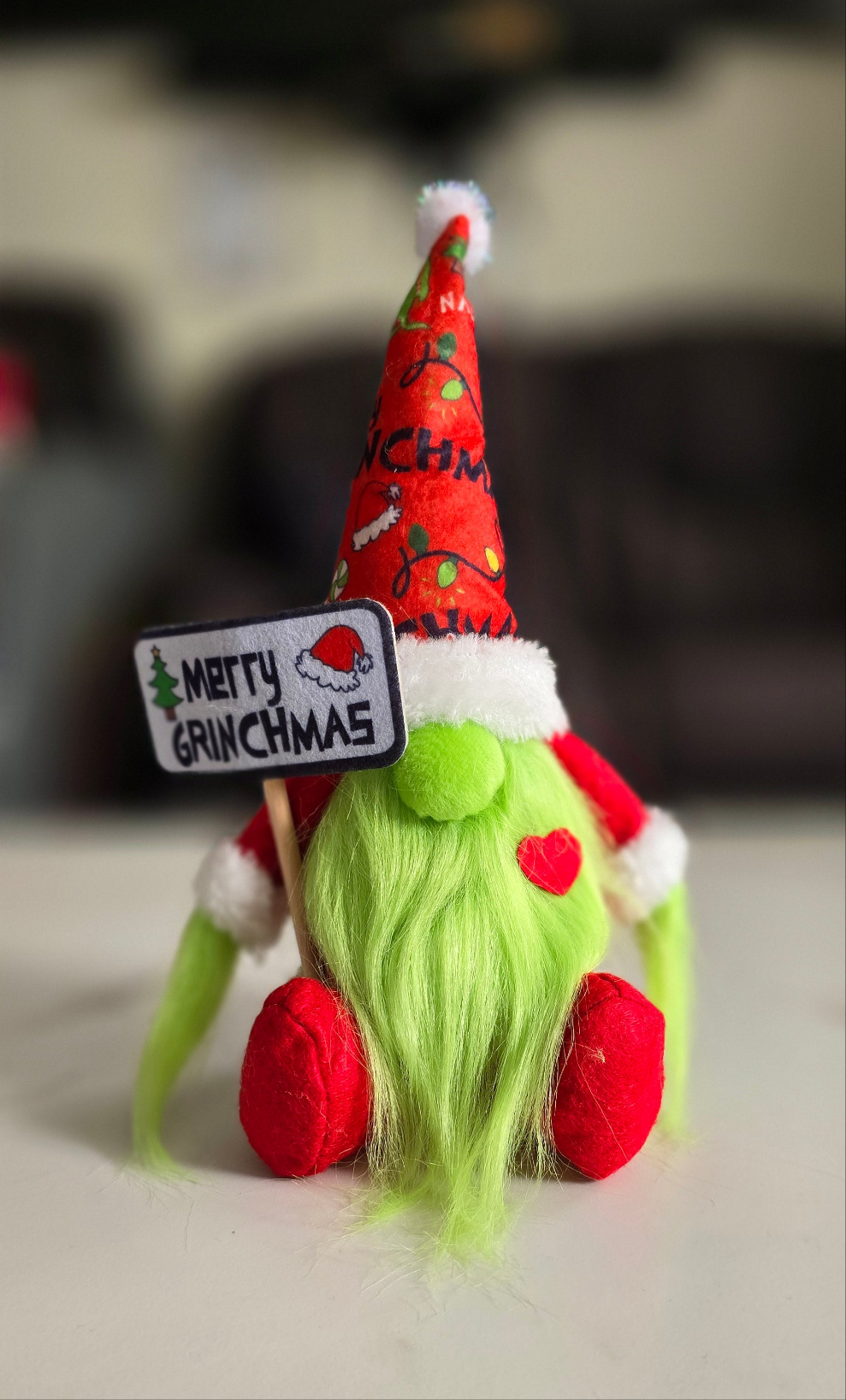 Introducing the Merry Grinchmas Gnome - the perfect addition to your Christmas decor! Spread the festive fun with this merry gnome inspired by the beloved Grinch.