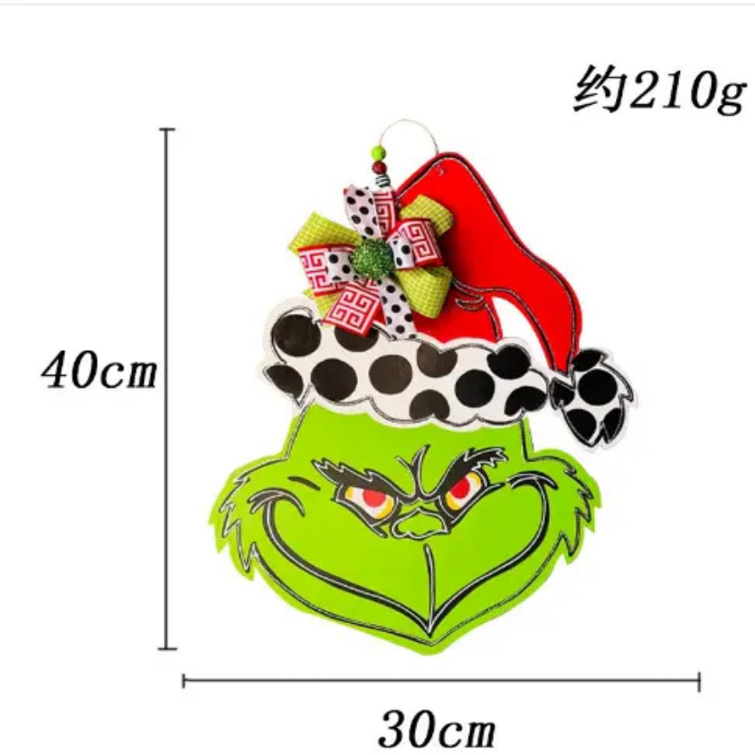 This Grinchy wooden wreath is the perfect addition to your Christmas decor. Crafted with precision, it brings a touch of whimsy and holiday cheer to any space. Bring the beloved character to life and spread joy with this handcrafted wreath.